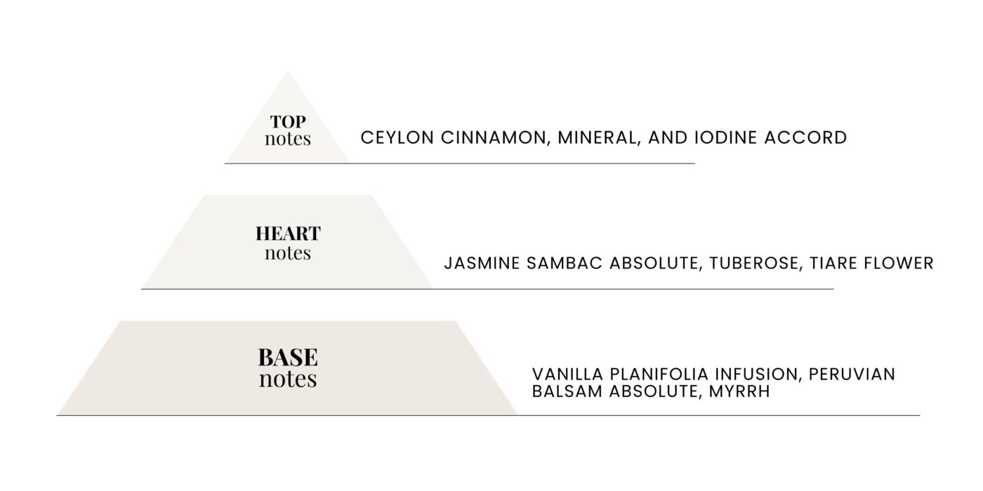 For those already in love or wanting to fall in love, this delicate scent might definitely steal your heart. With its powdery, soft, and intimate facets, Abed leaves an everlasting impression that intertwines with your senses. The fragrance is like a tender memory reminiscent of the early morning, brought to life with a remarkable blend of salty and sweet notes, cinnamon, tiare flower, and iodine.